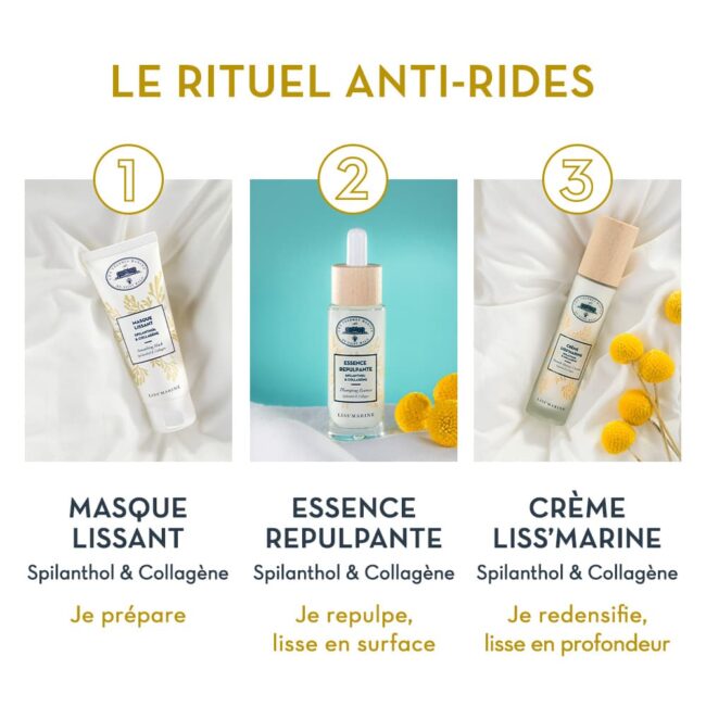 Son complexe Liss’Marine : une synergie experte de 4 actifs haute performance, issus des univers marin, végétal et biotechnologique :• Spilanthol